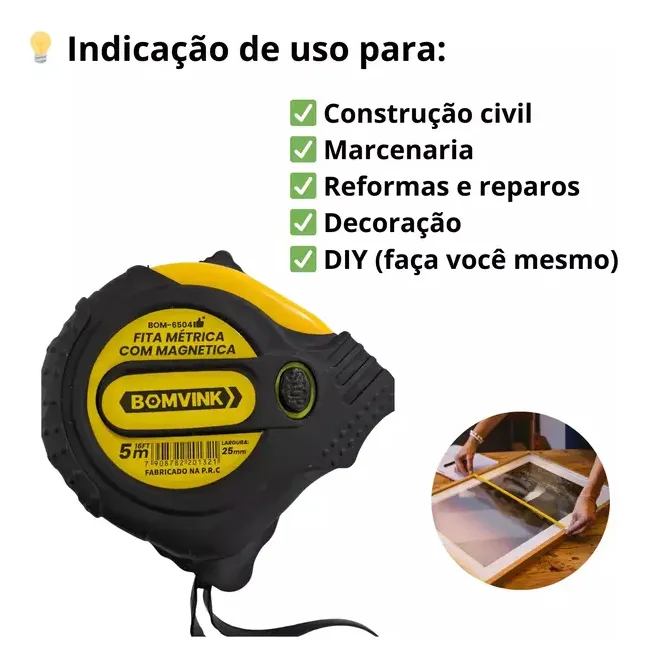 feita metrica com magnetica,Trena De Aço Emborrachada – 5m*25mm ,bomvink-6504
