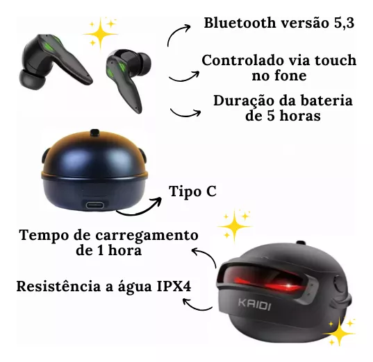 FONE DE OUVIDO BLUTOOTH KAIDI KD770
