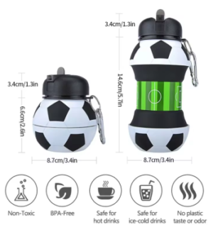Garrafa De Água De Silicone Dobrável 550ml, Futebol, Basquete